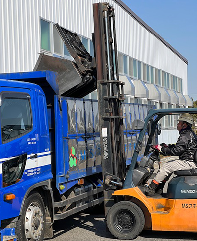 工場や建設現場などから出る産業廃棄物だけでなく、汚泥や金属類も回収し、可能な限りリサイクルをしています。定期便を持っていて、工場から出る金属スクラップを定量で定期的に回収している回収業者は少なく、金属スクラップが大量に出るお客様ともお取引できる点が当社の強みです。